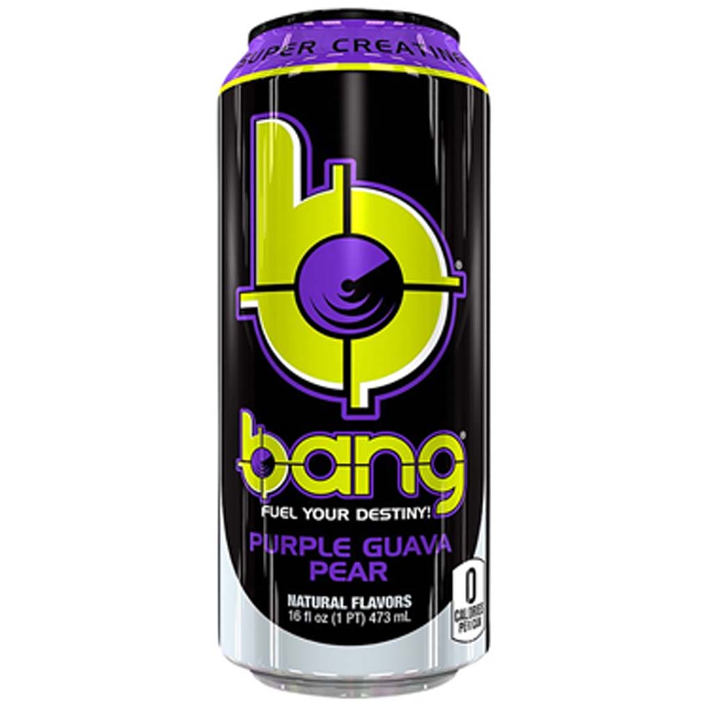 Bang Energy Drink es un refresco listo para tomar, sin calorías, sin azúcar, ningún carbohidrato y sin colorantes artificiales. Con Bang Energy Drink tendrás una buena dosis de cafeína natural acompañada de aminoácidos de cadena ramificada BCAAs, arginina y vitaminas del grupo B